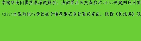 李建明民间借贷一案是近年来备受关注的典型民事案件,其案情复杂且涉及多方利益,成为司法实践中研究借贷关系认定的重要样本。在该案中,原告主张被告未按约定偿还借款,而被告则抗辩款项性质并非借贷,而是其他经济往来。此类争议在民间借贷领域极为常见,往往取决于当事人能否提供完整、合法的证据链。